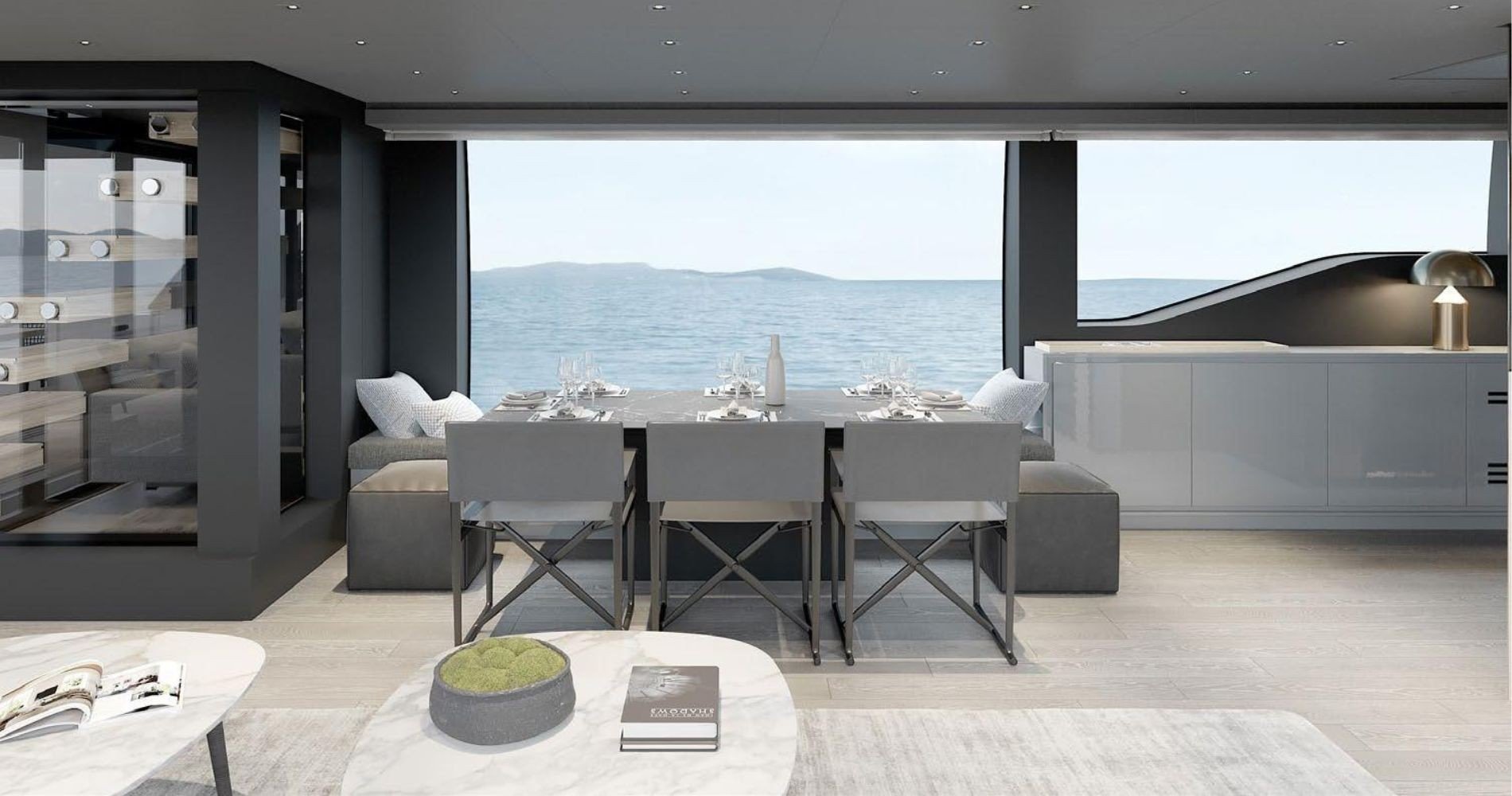 The SL90A breaks conventions with its unique asymmetrical layout, maximizing onboard space without sacrificing style. Combining advanced technologies and visionary design, this yacht strikes the perfect balance between comfort, design, and performance, marking a new chapter in the yachting landscape.