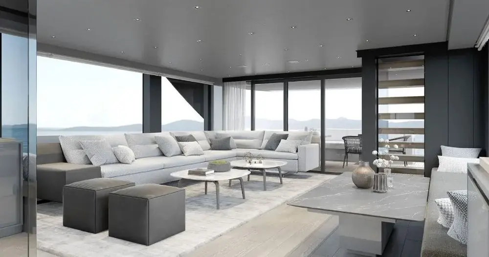 The SL90A stands out for its distinctive asymmetrical layout, a hallmark of Sanlorenzo’s forward-thinking approach to yacht design. Expansive interiors, fluid circulation between spaces, and generous openings towards the sea redefine the onboard experience, creating a continuous dialogue between interior and exterior.