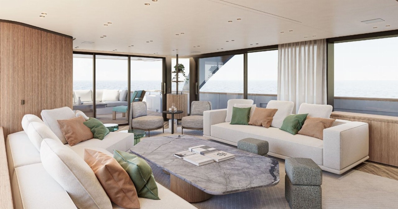 The Sanlorenzo SD90, a refined evolution of the SD range, is presented in its display version with interiors by Patricia Urquiola, combining elegance, comfort and innovative materials to create welcoming spaces rich in character.
