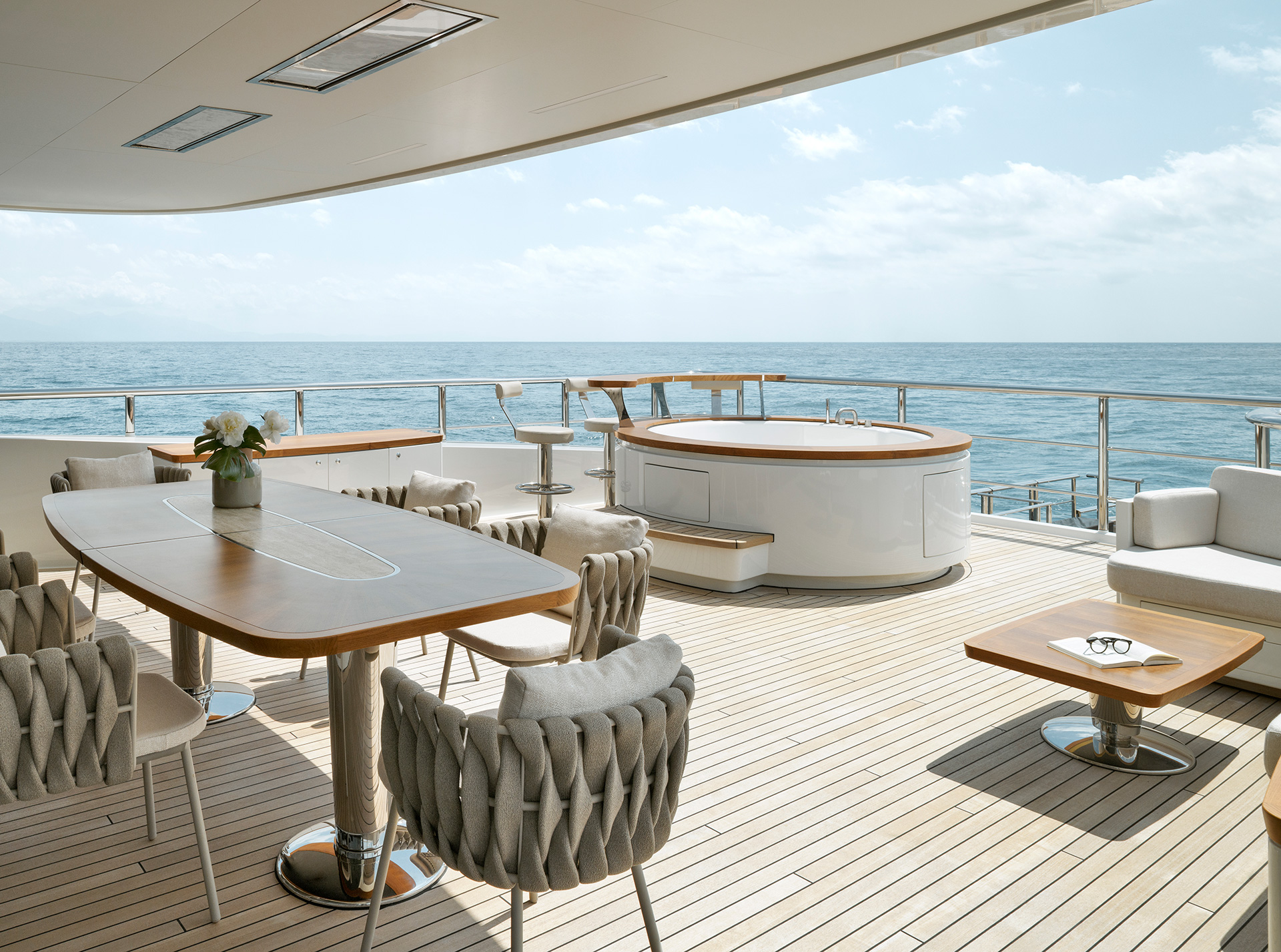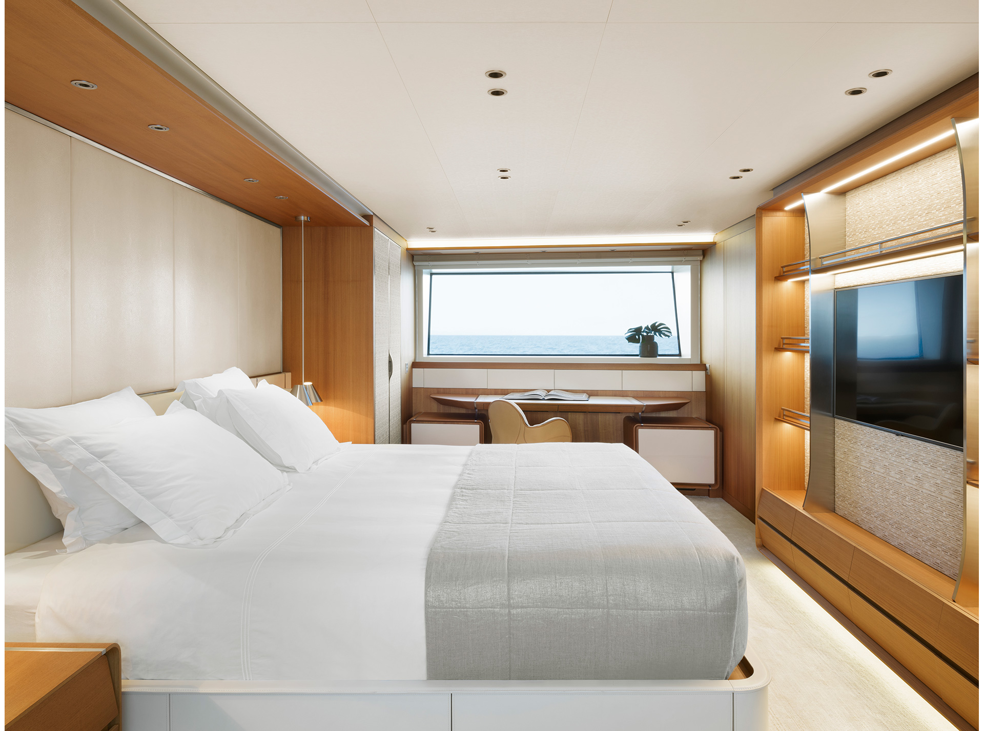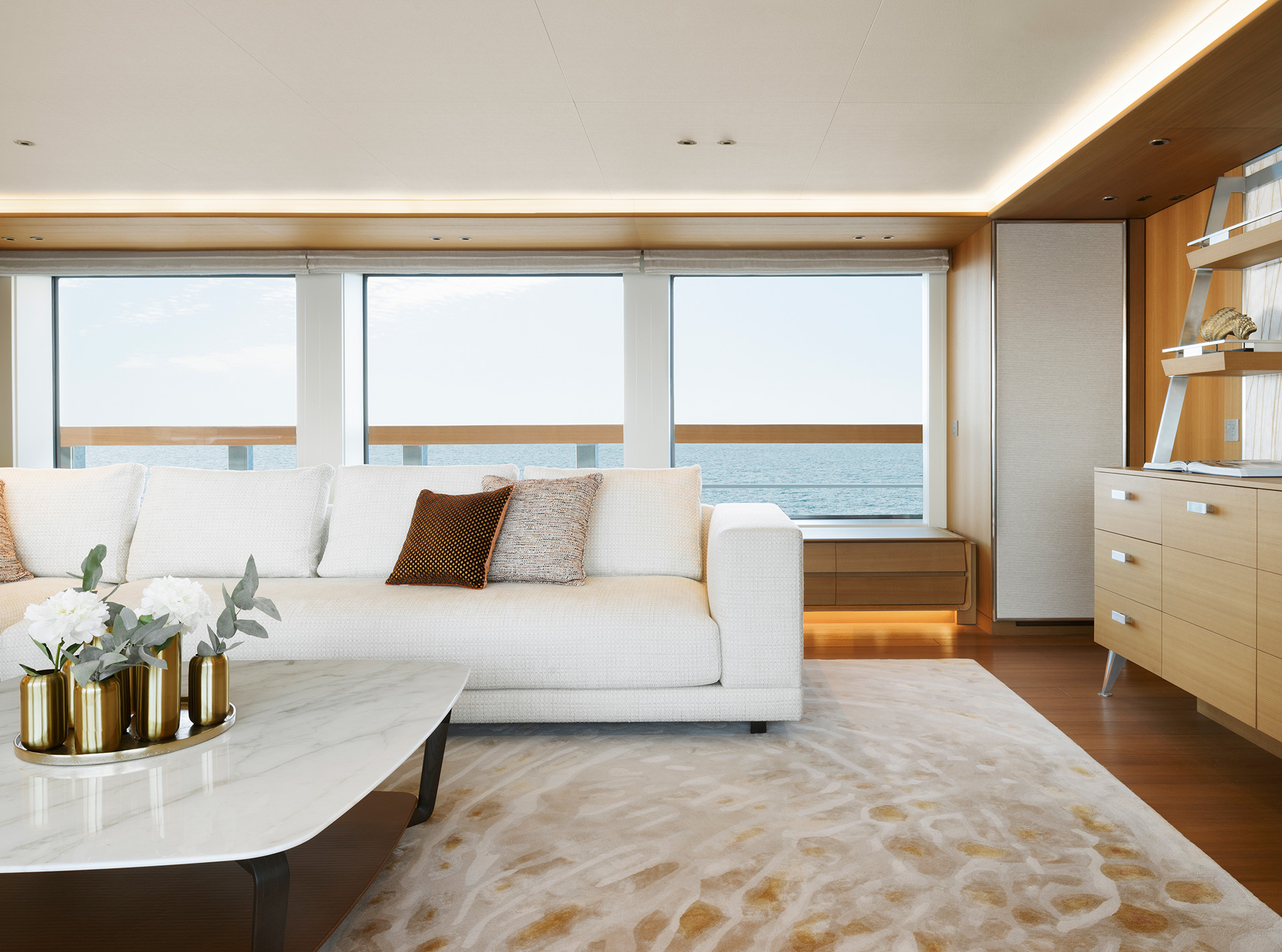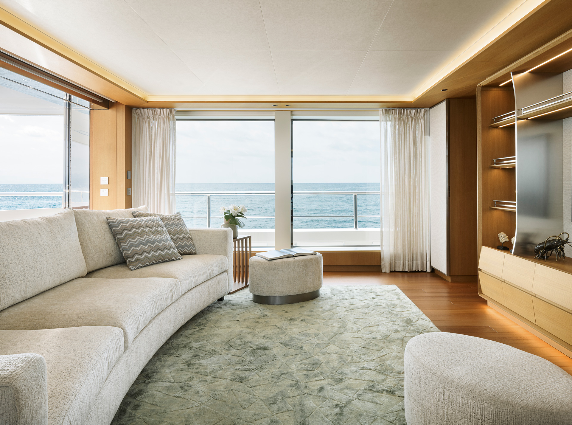 Interiors are conceived to support life on board in every latitude: thoughtful circulation, generous social areas, flexible cabins and tactile materials provide comfort, resilience and an inviting sense of home wherever you are at sea.