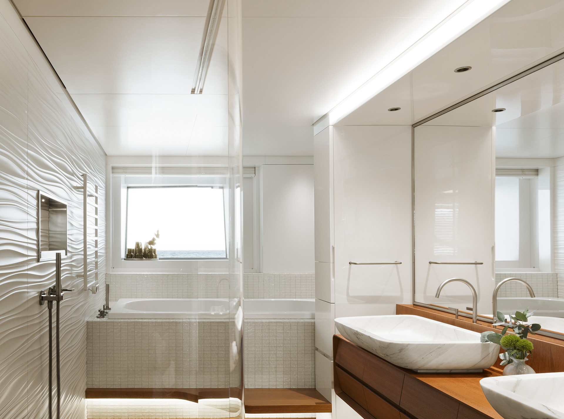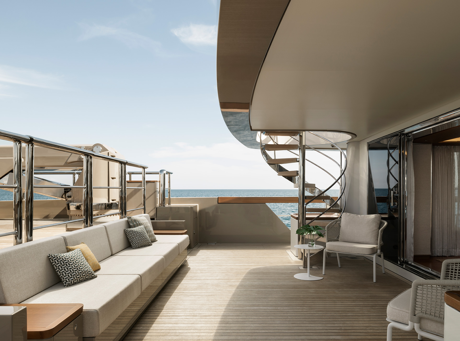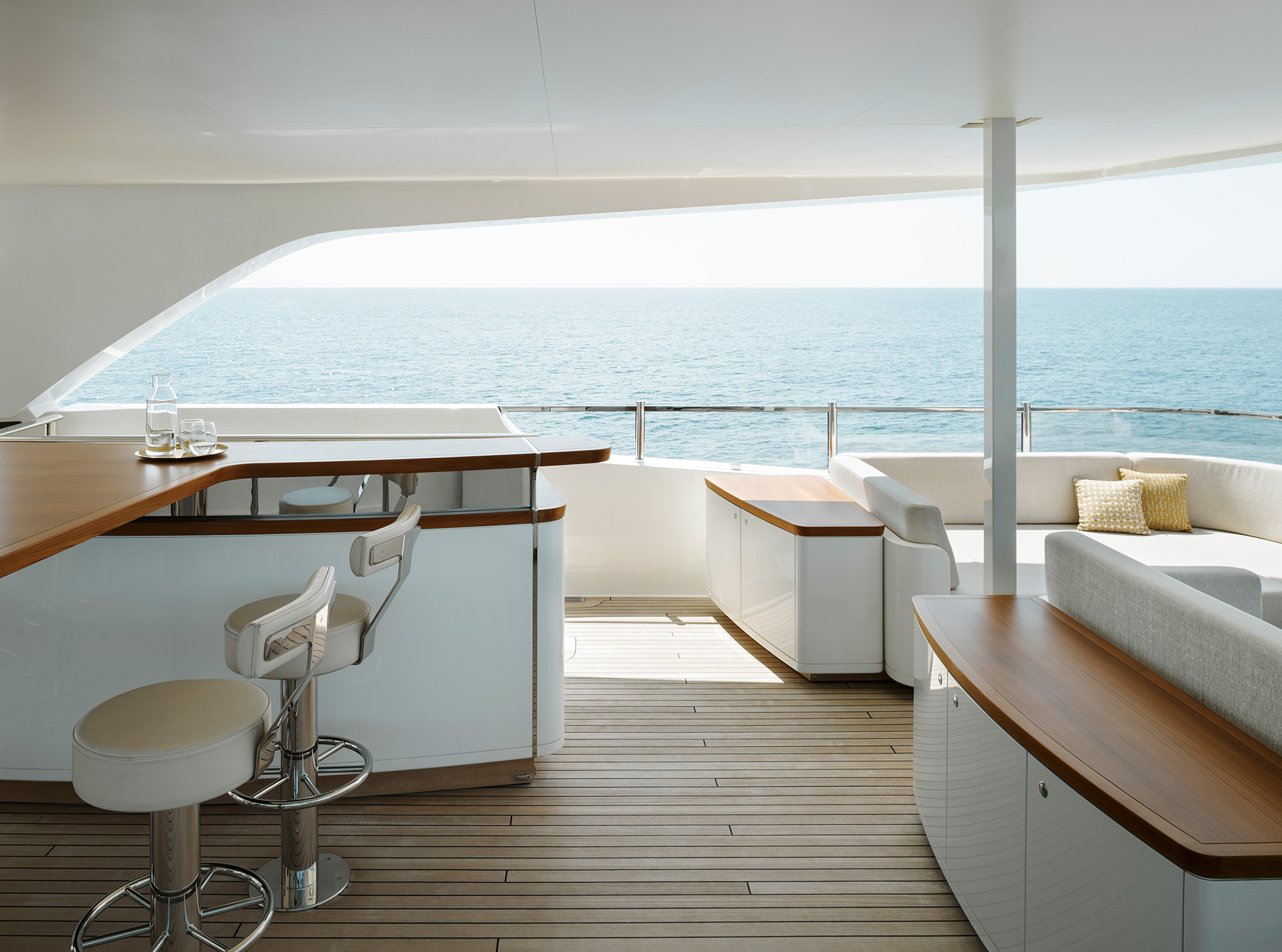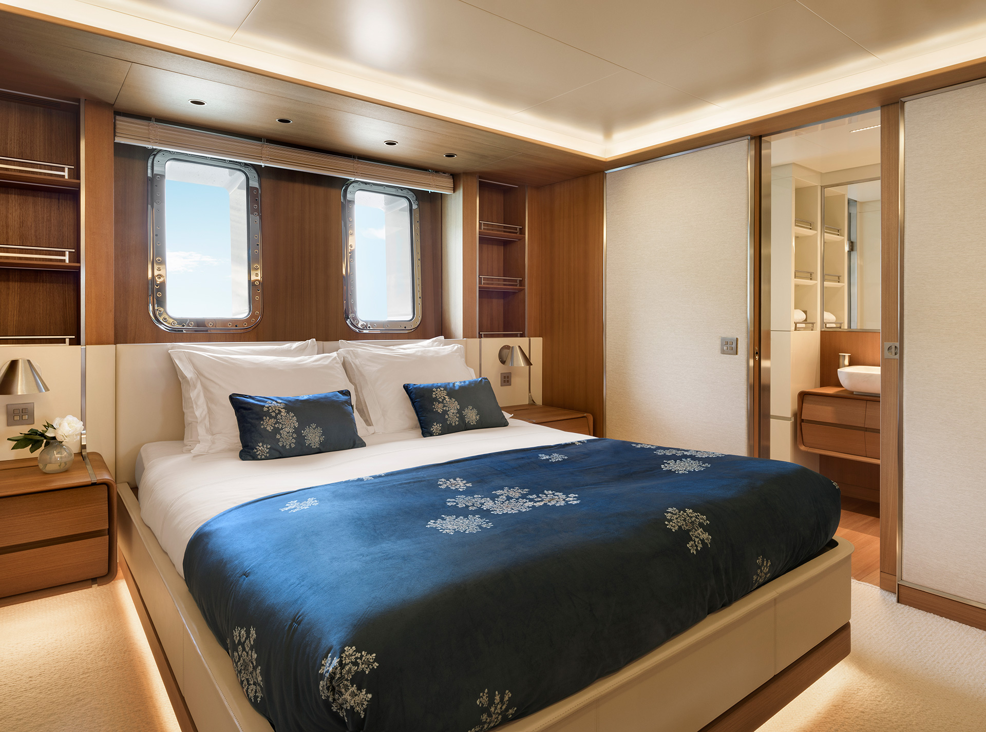 Interiors are conceived to support life on board in every latitude: thoughtful circulation, generous social areas, flexible cabins and tactile materials provide comfort, resilience and an inviting sense of home wherever you are at sea.