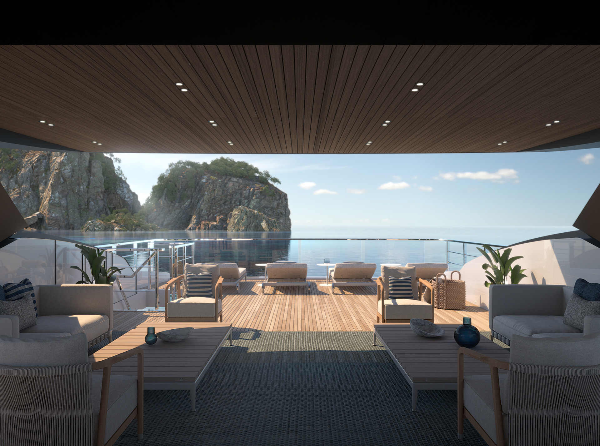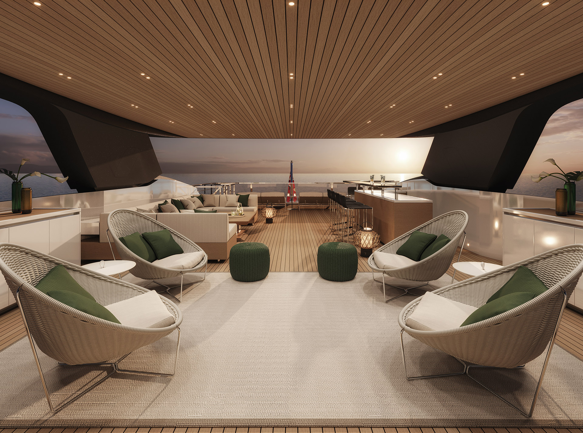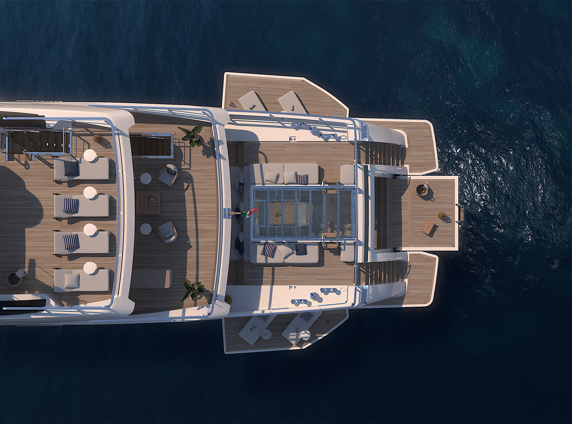The exterior lines articulate generous proportions, expansive glazing and a harmonious silhouette, for a powerful yet elegant profile. Large deck areas and fluid transitions reflect contemporary minimalism.