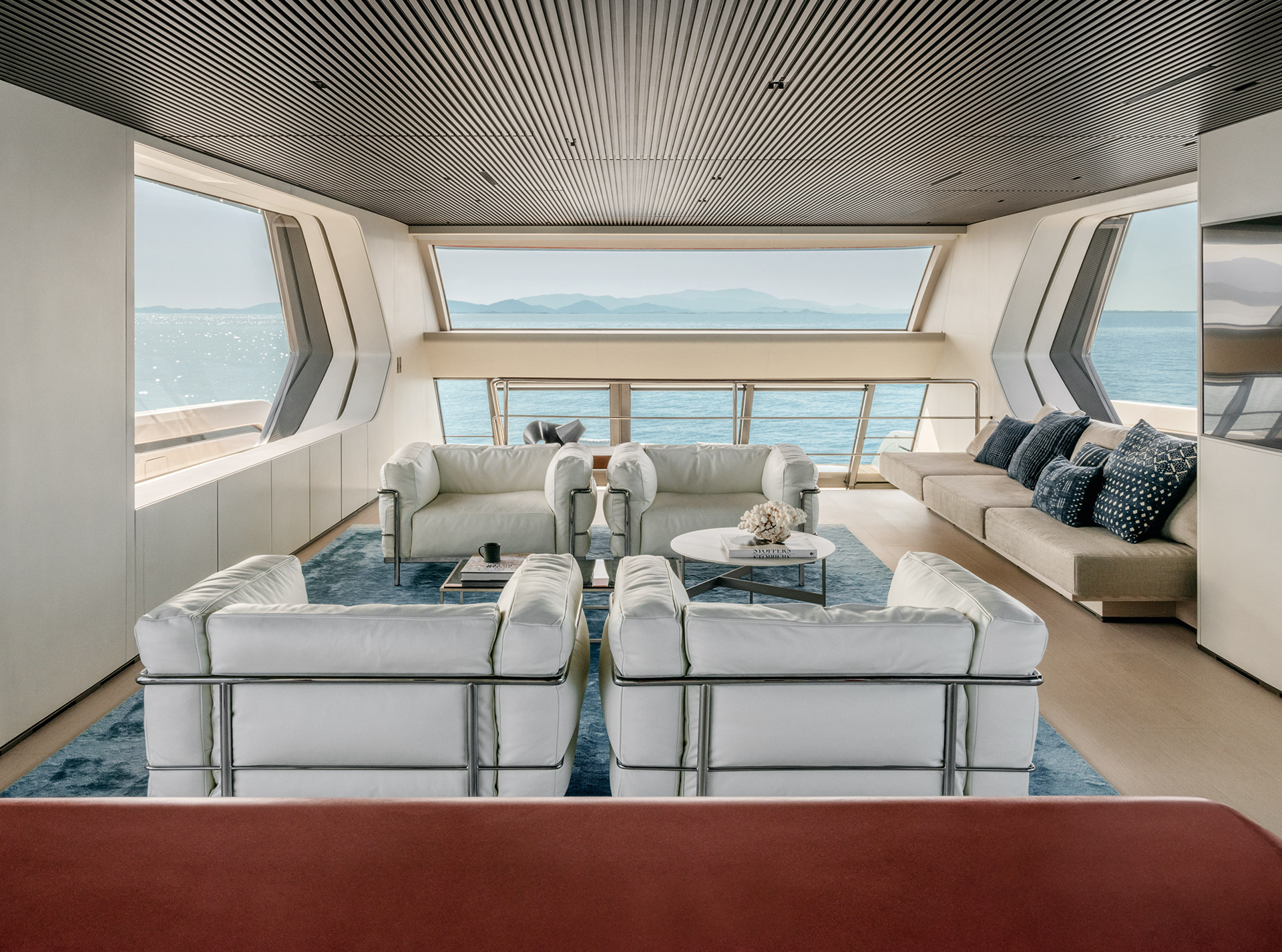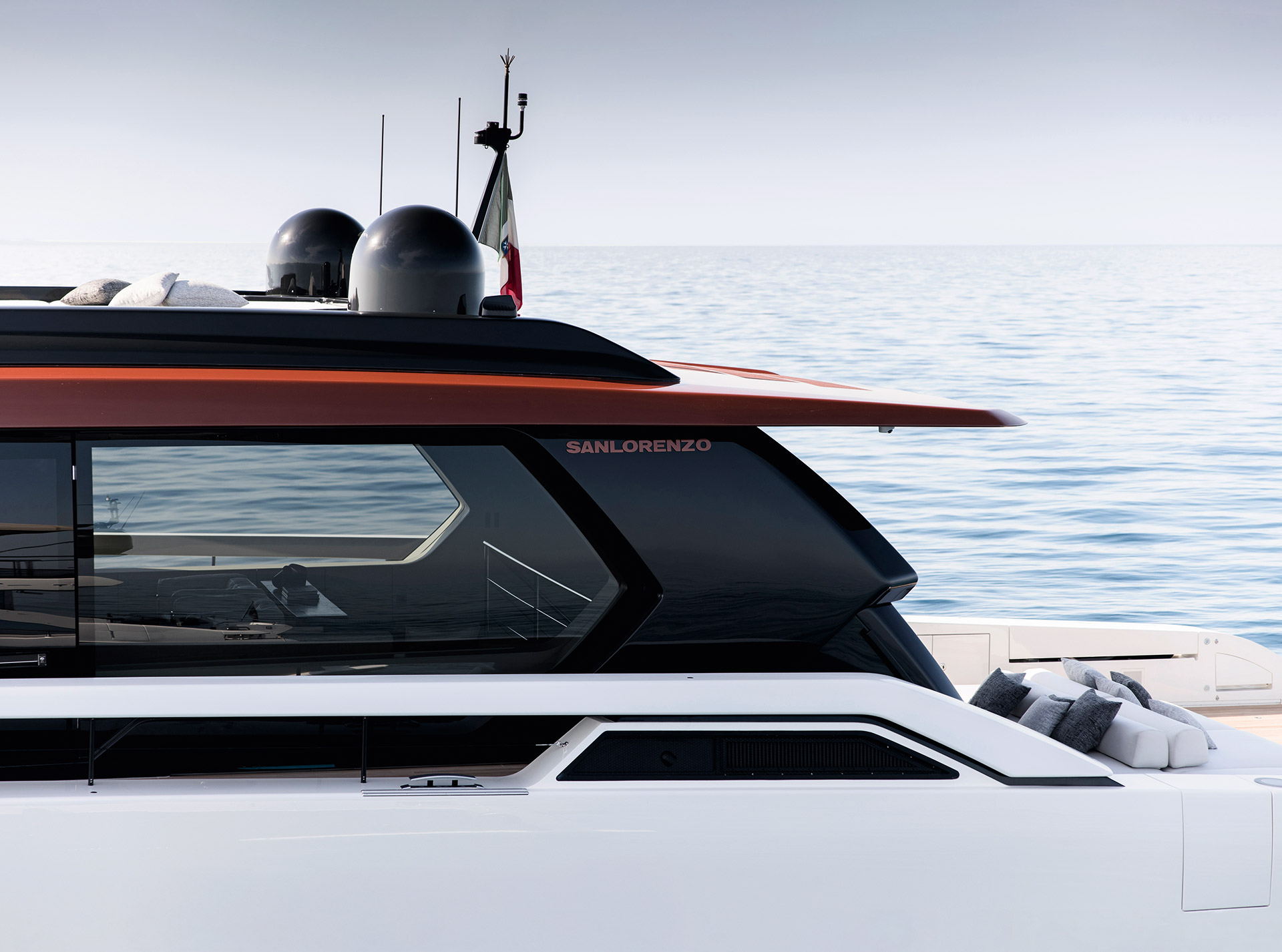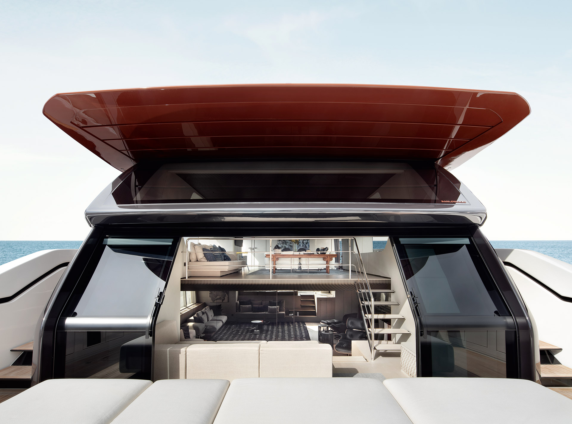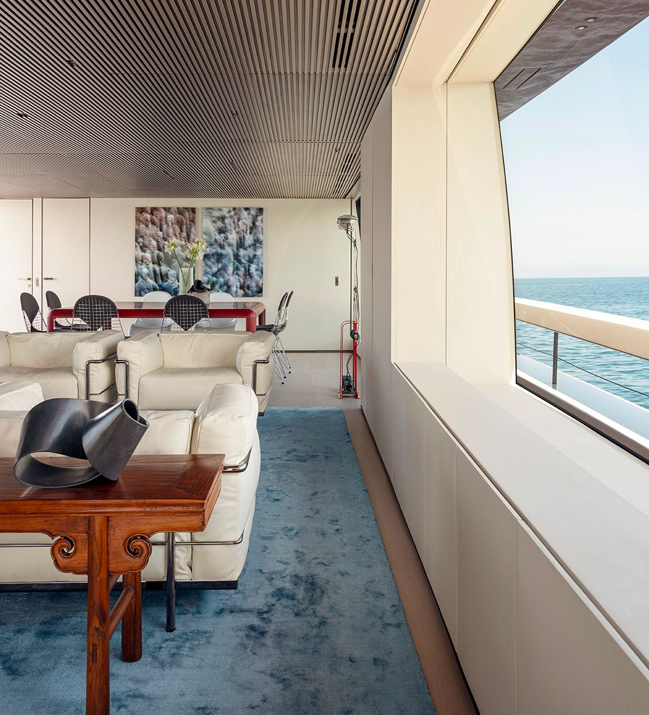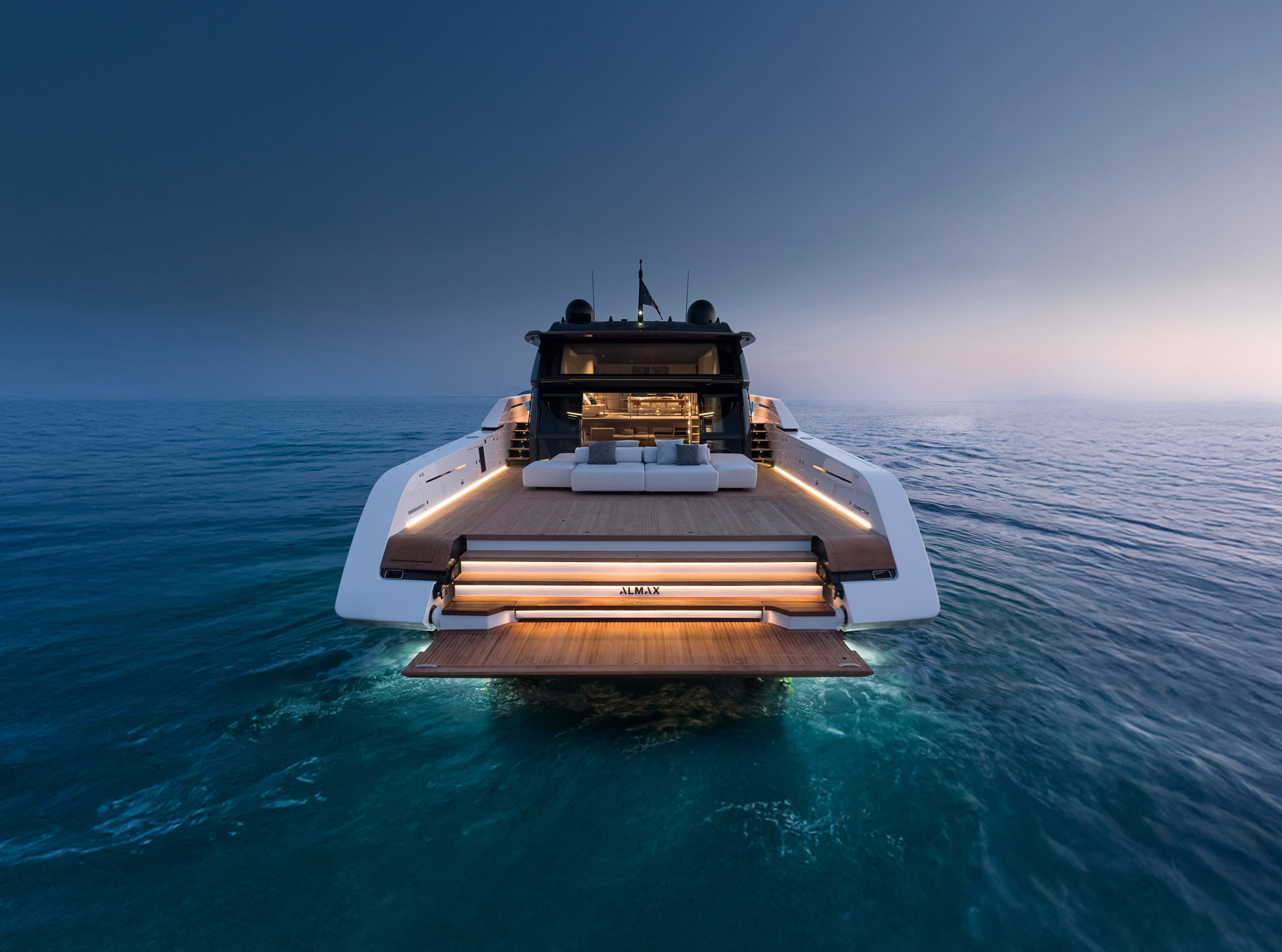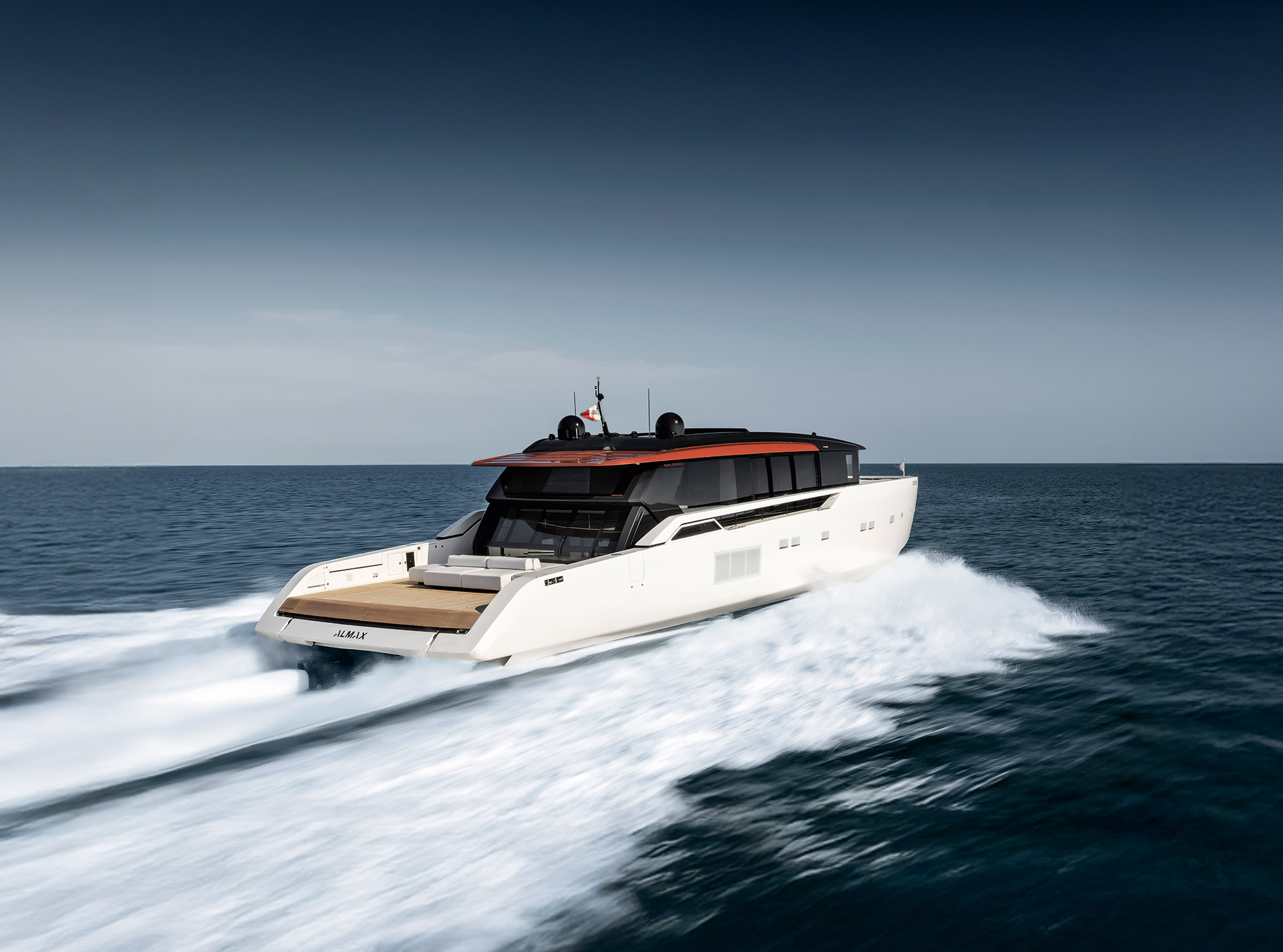 An advanced Smart Performance platform combines a lightweight hull, hydrojet propulsion and a three-engine system for efficiency and speed. Energy recovery, solar panels and batteries reduce consumption while enhancing onboard autonomy.