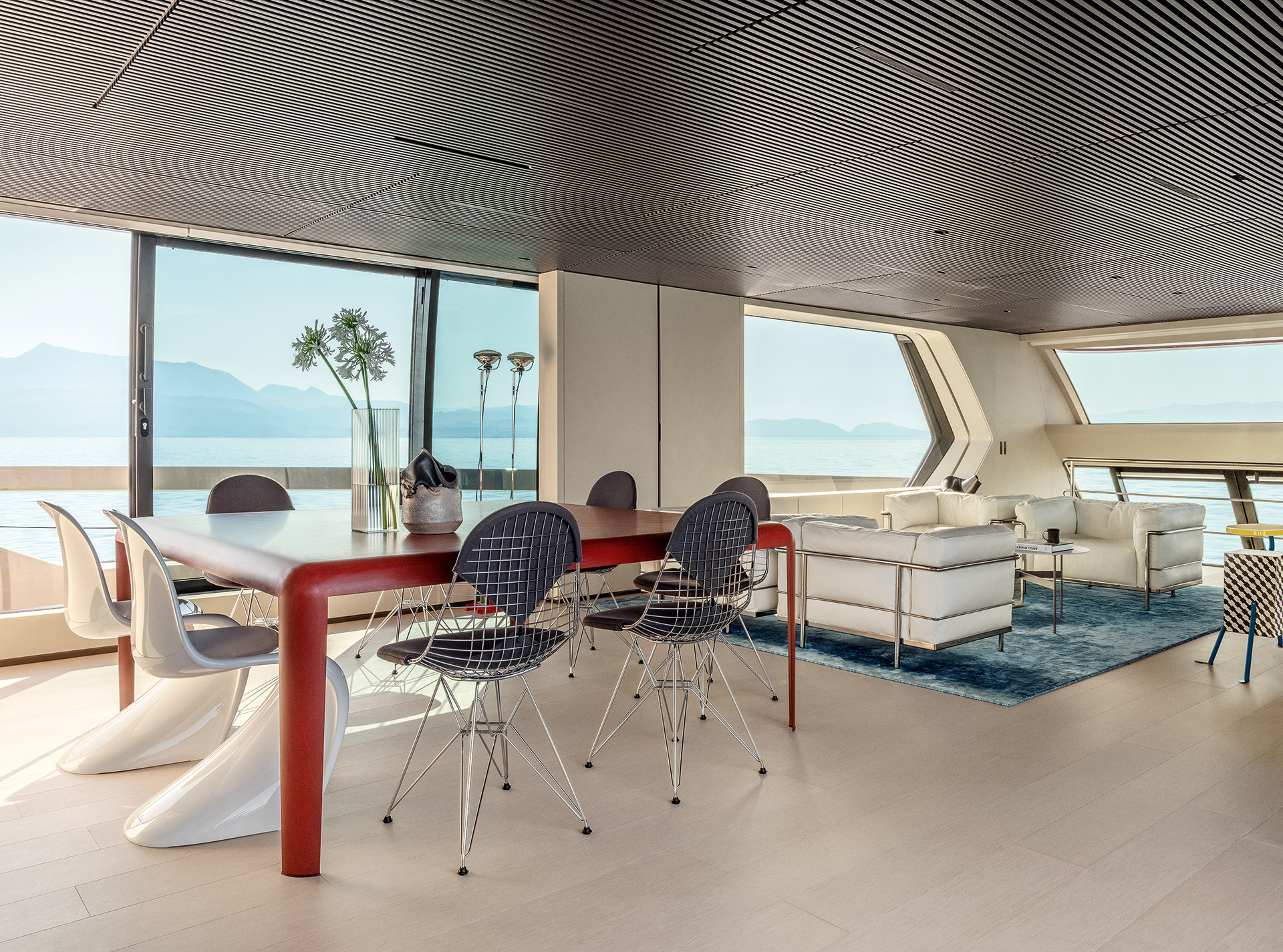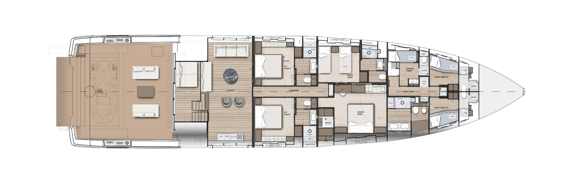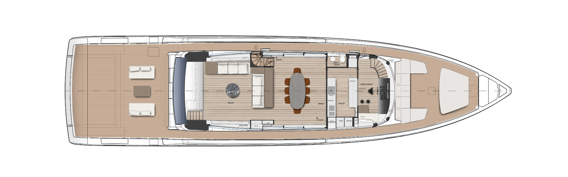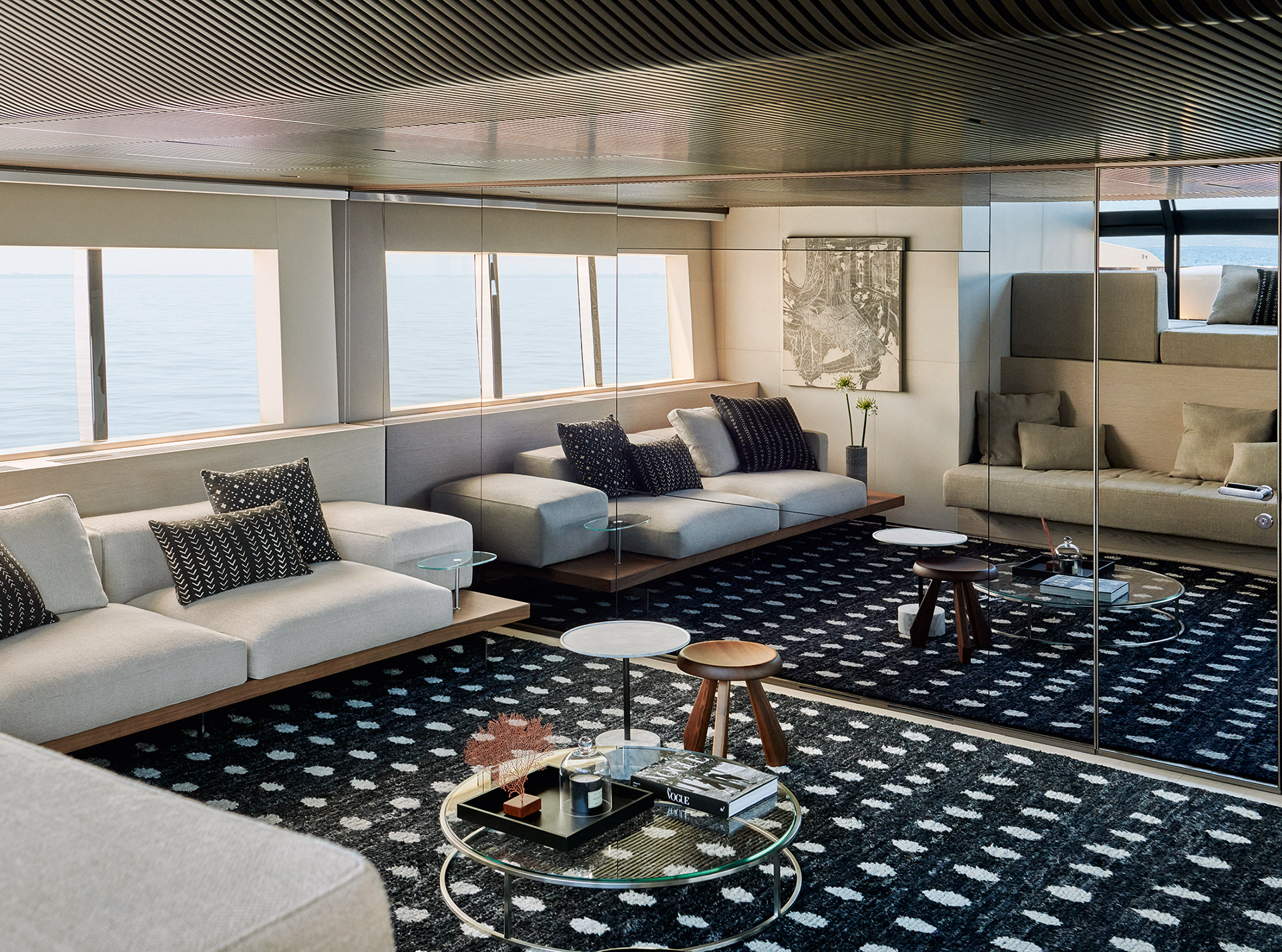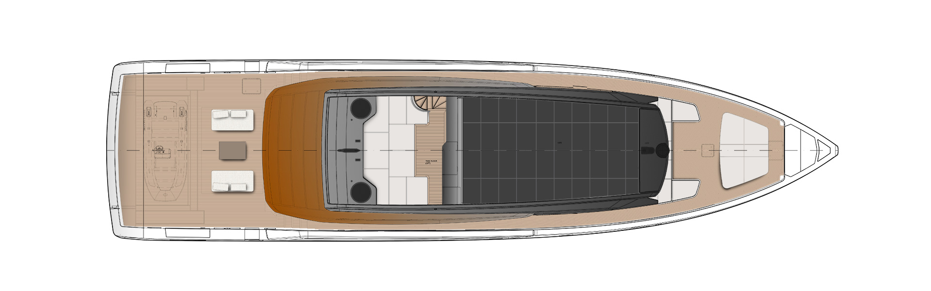 An advanced Smart Performance platform combines a lightweight hull, hydrojet propulsion and a three-engine system for efficiency and speed. Energy recovery, solar panels and batteries reduce consumption while enhancing onboard autonomy.