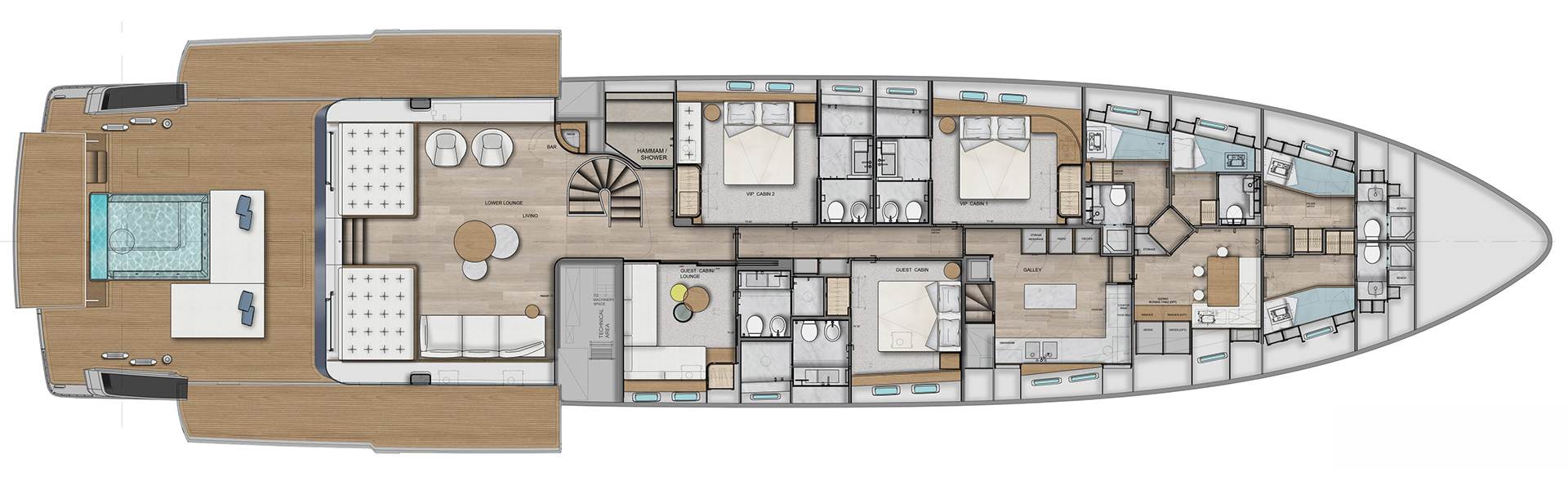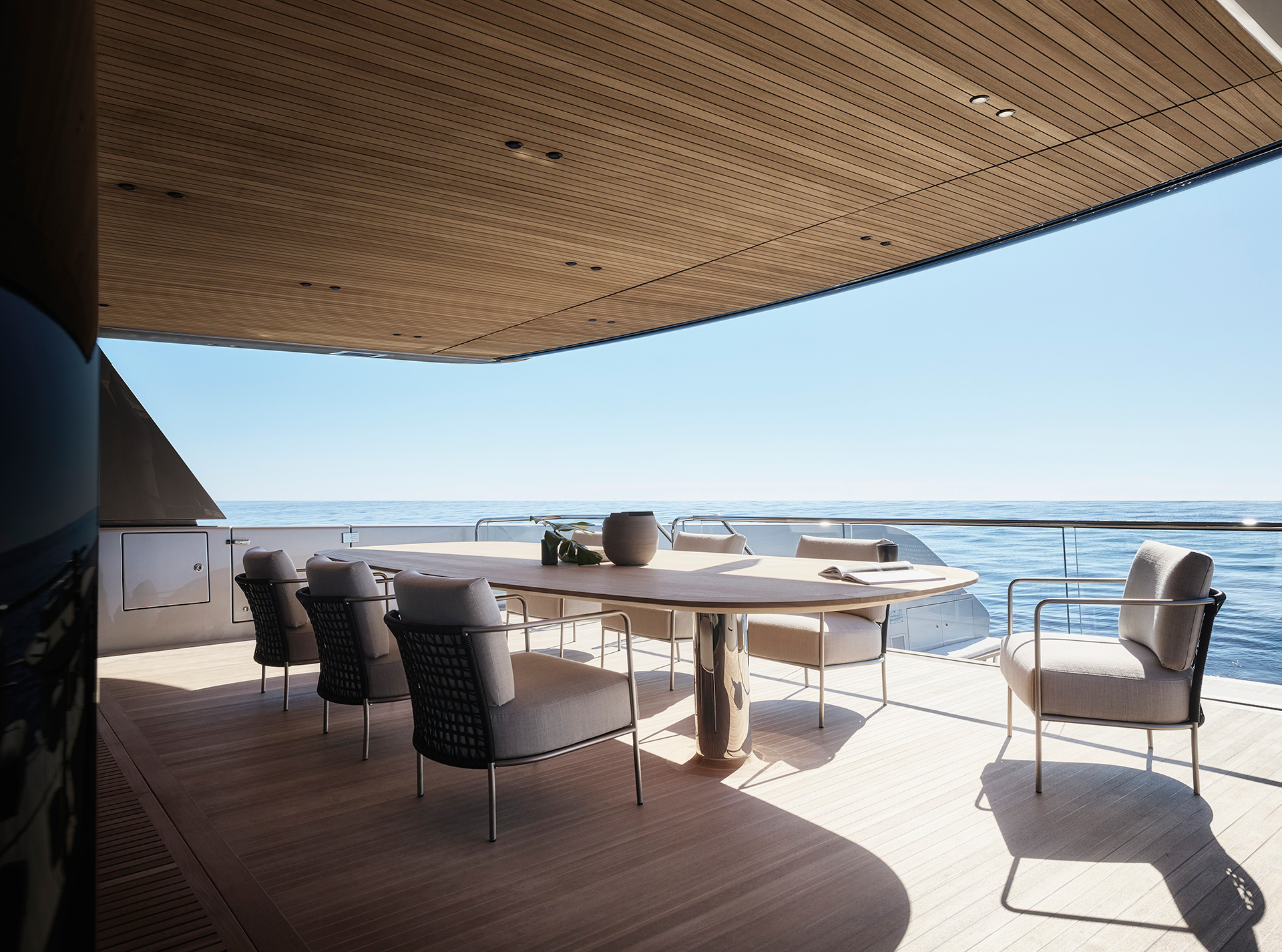 A synthesis between classic motoryacht with flying bridge and the explorer range. The largest SX offers expansive onboard spaces and a 70 sqm beach area with retractable pool and 360° panoramic views from the Upper Deck.