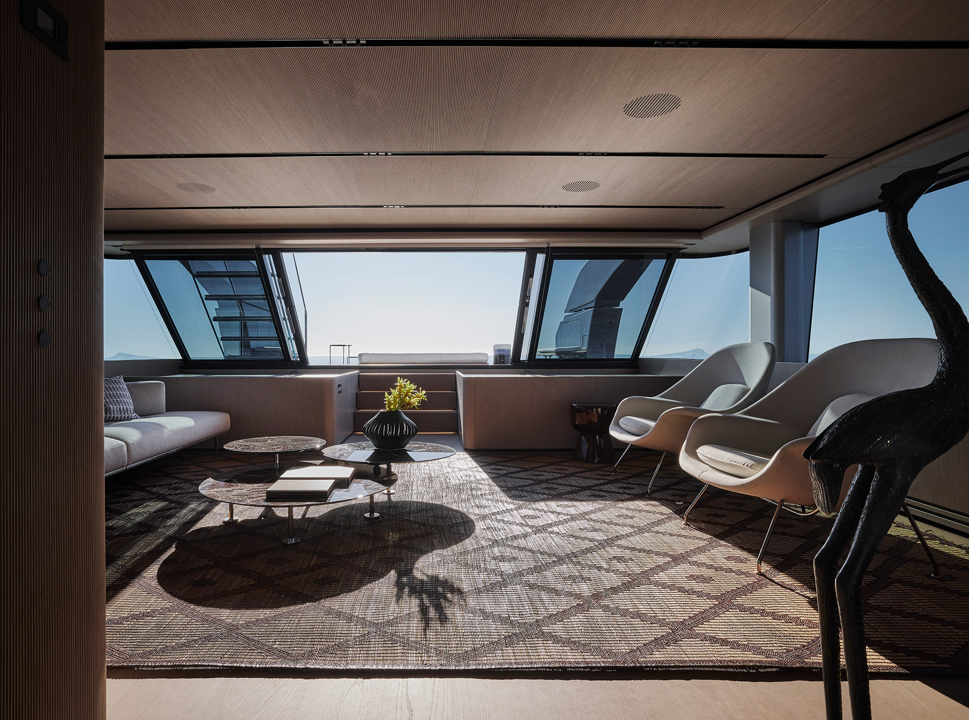 Interior spaces are defined by calm brightness and essential elegance, where light, refined materials and fluid layouts create a serene atmosphere, dissolving boundaries between inside and sea for effortless, contemporary living.