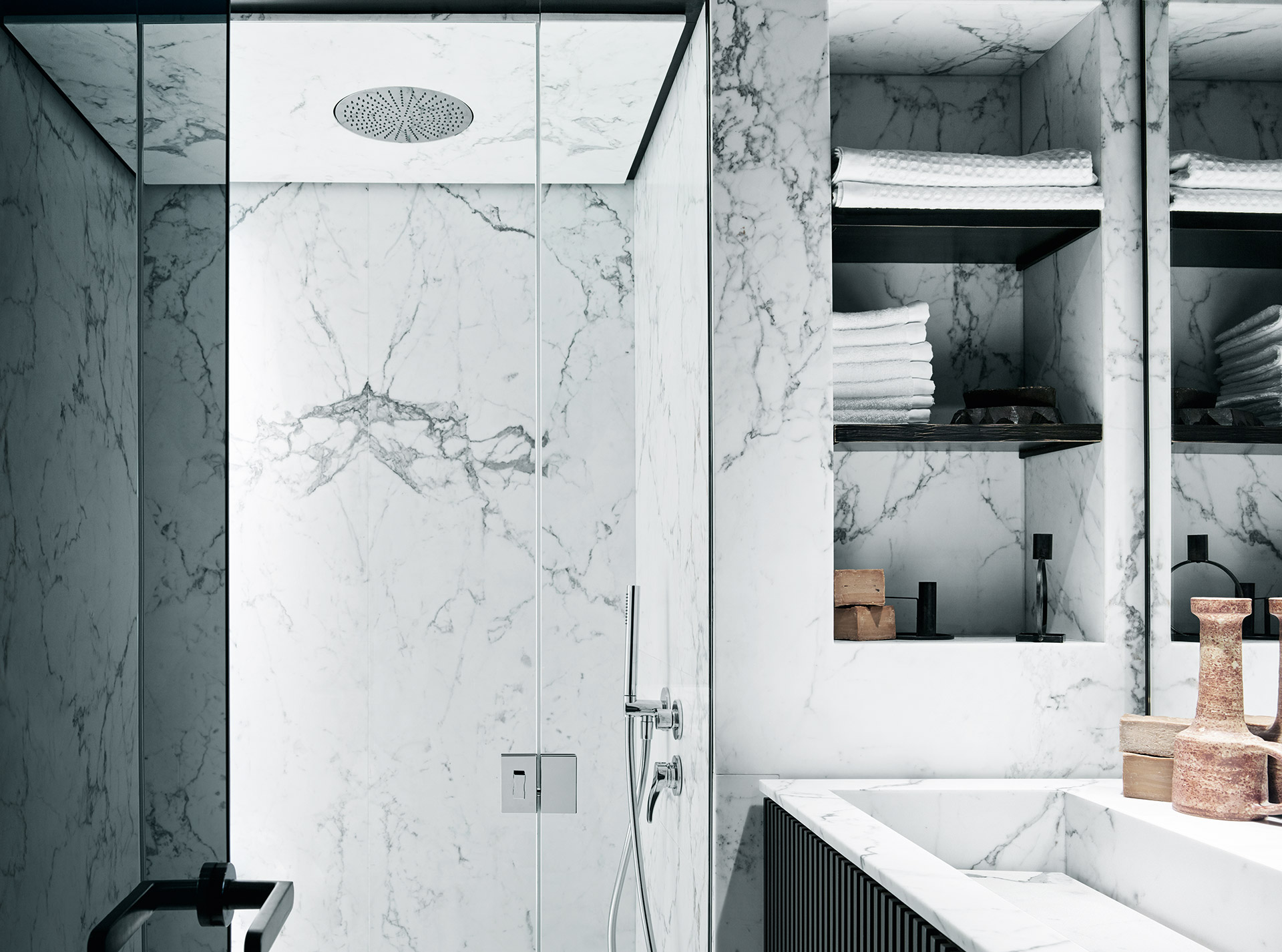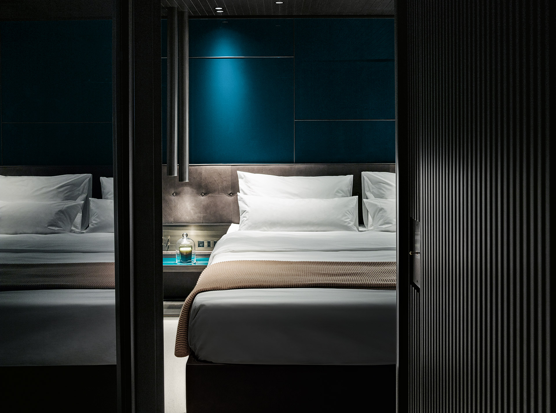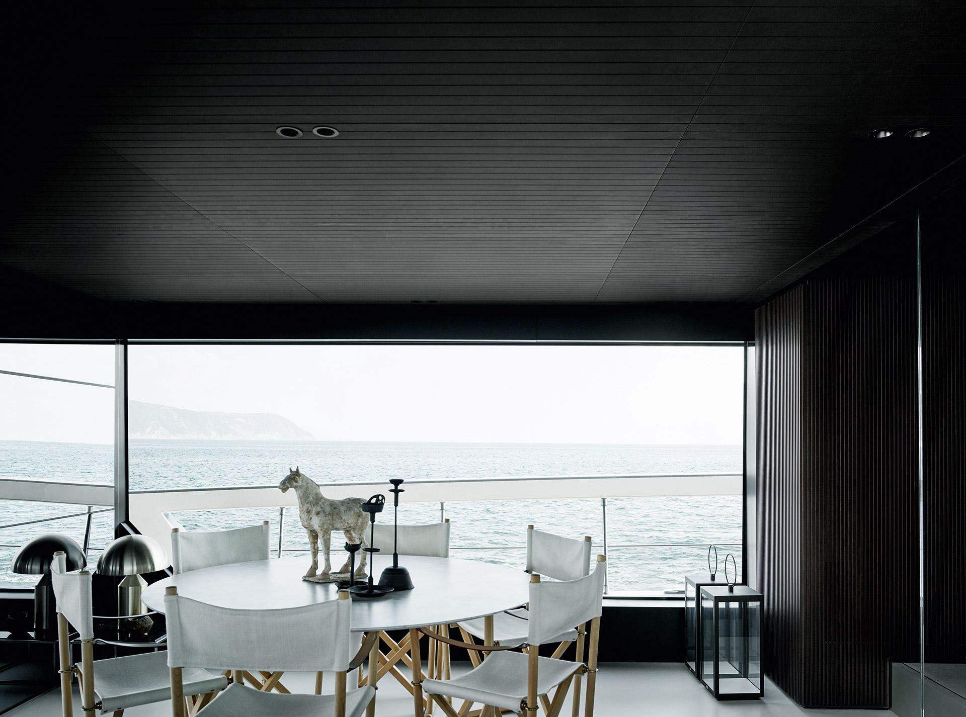 Understated and architectural, the interiors prioritise space over ornament. Clean lines, balanced proportions and soft textures create a composed atmosphere, where light, comfort and functionality define a sophisticated onboard experience.